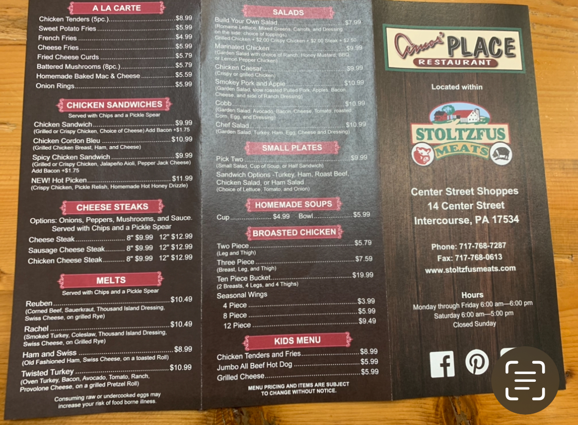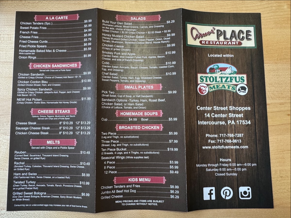At Amos' Place Menu, located at 14 Center St, Intercourse, PA, you're in for a real treat. Whether you're stopping by for a quick bite or settling in for a relaxed meal, the menu offers a little something for everyone. From hearty sandwiches and fresh salads to comforting classics, each dish is made with care, using fresh ingredients that highlight the best of local flavors.